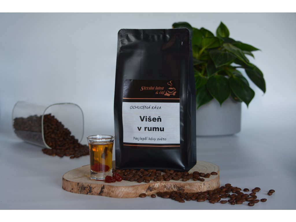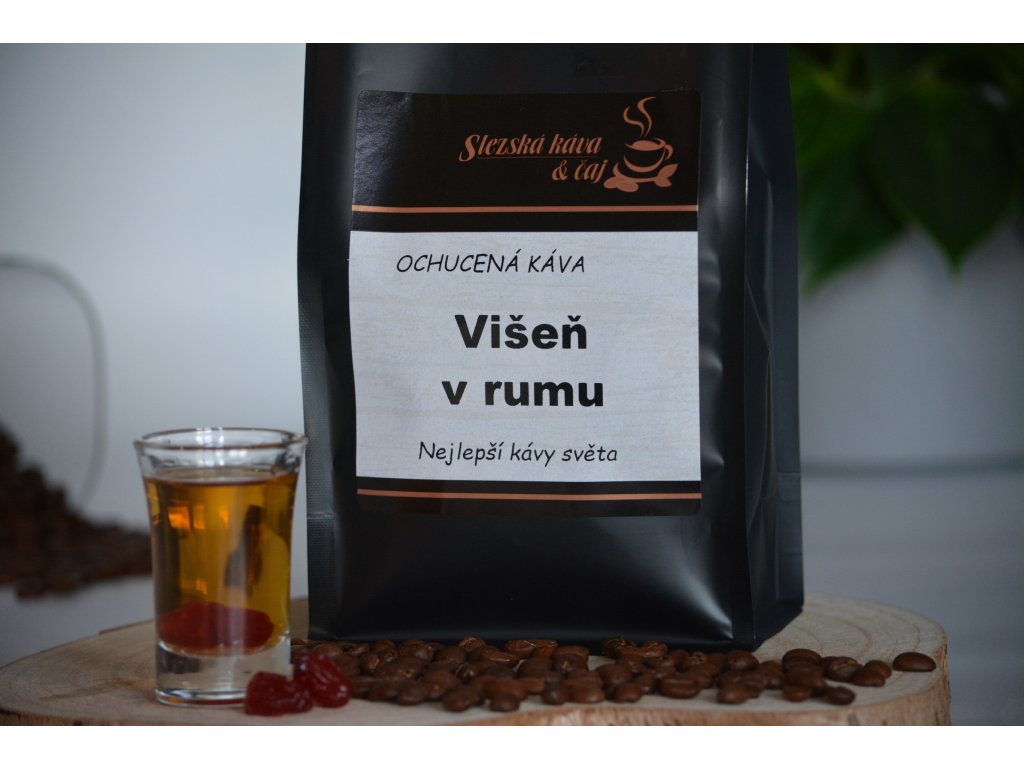 Ochucená zrnková káva s příchutí Višeň v rumu.