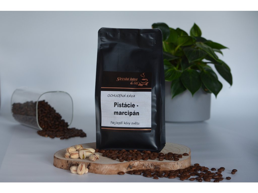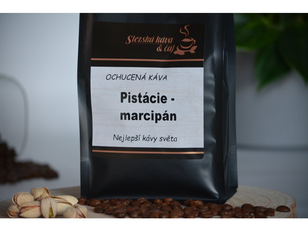 Ochucená zrnková káva s příchutí pistácií a marcipánu.